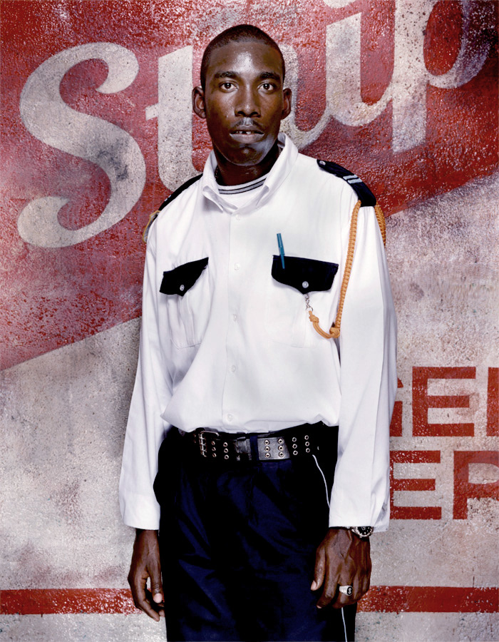 These photographs were taken in the summer of 2003 in Ocho Rios, which is on the north coast of Jamaica. I was there assisting photographer Danielle Levitt who was hired to shoot an album package for an American rap group. Simultaneously, Jake Nava (of Beyoncé’s “Crazy In Love” fame), was shooting the group’s new video. All of the portraits you see here are of the video extras from that video shoot. They are all wearing their own clothes and make-up. The security guard is the only exception. He was a real security guard hired by the production company.